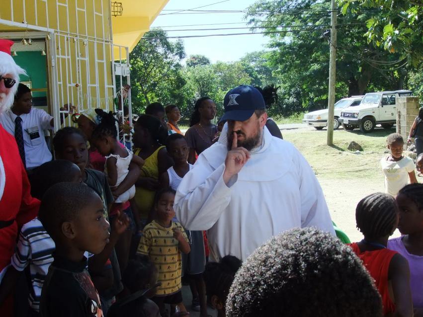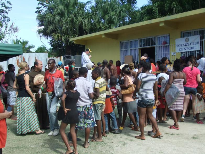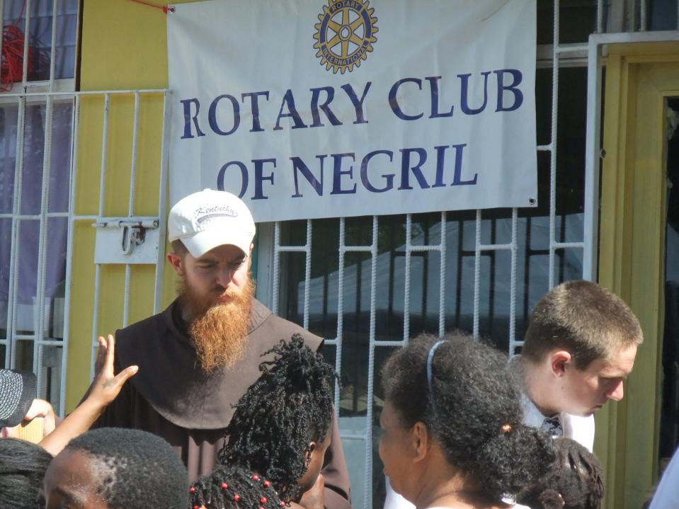 There were a lot of happy faces today as Fr Jim his brothers, Mormon volunteers, the ladies in the kitchen, volunteers and the Rotary worked together. They gave out blankets, gifts for the children, food bags and either curried goat or pork to the waiting crowd of people.