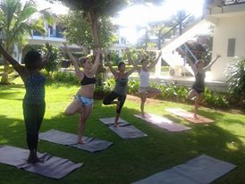 Yes everyone is welcome. Negril.Treehouse,Norman Manley Blvd. 9am Tuesday-Saturday. We provide mats and a lovely view. Rates are $15 per session. Check in at front desk,no reservation required.