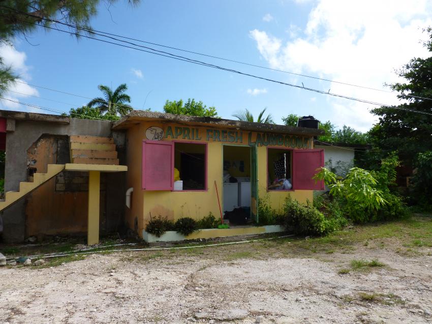 Hello bikermike there is a laundry in the next lot past the taxi/bus park on the road to sav. you can drop your laundry off and she will do it and have it all folded for 500j's per load for ea. segment. if you do it yourself its 450j and the owner isn't opposed to delivering to your apt. It's all the way at the back of the lot on the right. Anita's laundry.