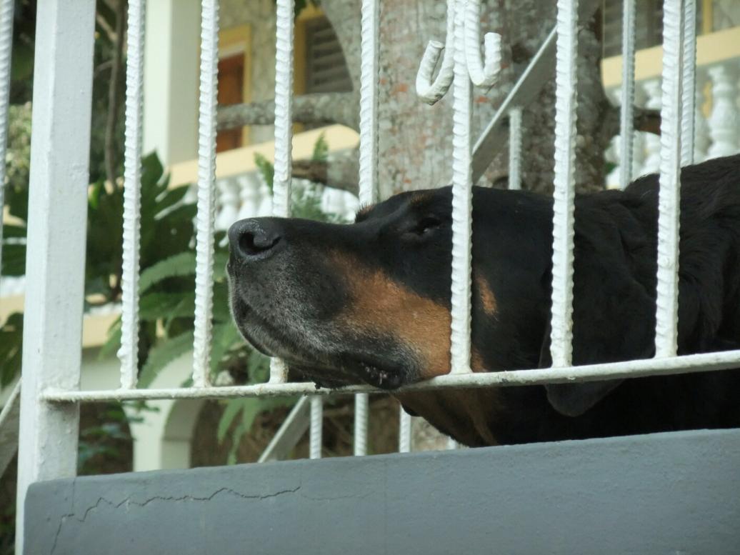 This is Ivan's favourite resting place. It's at the top of the stairs near the office. But, if he doesn't know you, try to go past -LOL