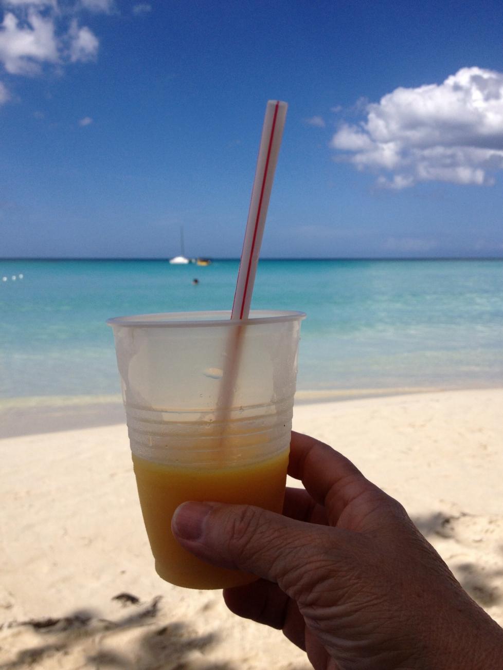 We went back to Jamaica Tamboo on Christmas Eve. We also dine at Chicken Lavish, Bourbon Beach, and LTU. We went to LTU on our last night hoping to catch the sunset. It poured down rain, but we enjoyed our last evening anyway. The weather was great. We had rain in the late afternoon about 4 days. It was a relaxing vacation filled with daily mango daiquiris every morning. Some days we went to Alfred's for breakfast, other days we ate fresh fruit on the beach & waited for the jerk pork to be delivered to our chair. Bringing our own umbrella was a huge plus. We stayed on the beach from 8 - 4 everyday. People made friends with us so the could use our umbrella when we went for a walk, massage, etc! They were envious! Even a beach dog crawled up under my chair seeking refuge from the sun & hung out under the umbrella for awhile.