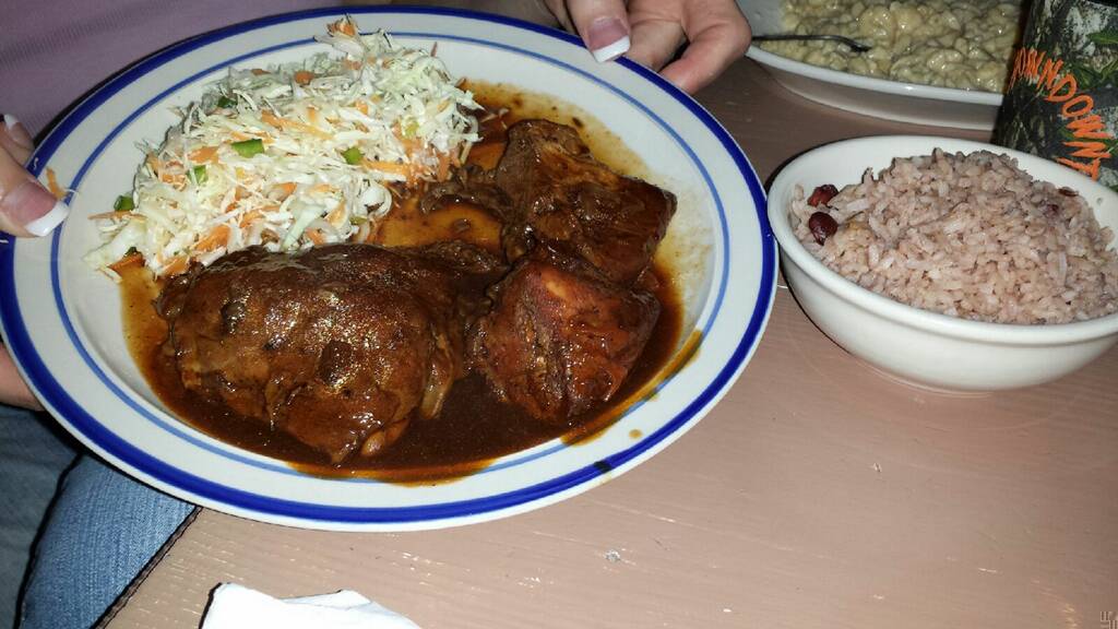 Very nice clean place and all the food was good. I got brown stew chicken. I generally love stews. Jenny's was good, although I pictured brown stew chicken as having pieces of stuff more like a stew. This was chicken with a thin brown sauce. So for all you picky eaters, this is a tame dish. The mac and cheese was good, it was whitish, not the yellow we are used to. My husband got curry chicken which was also good.
