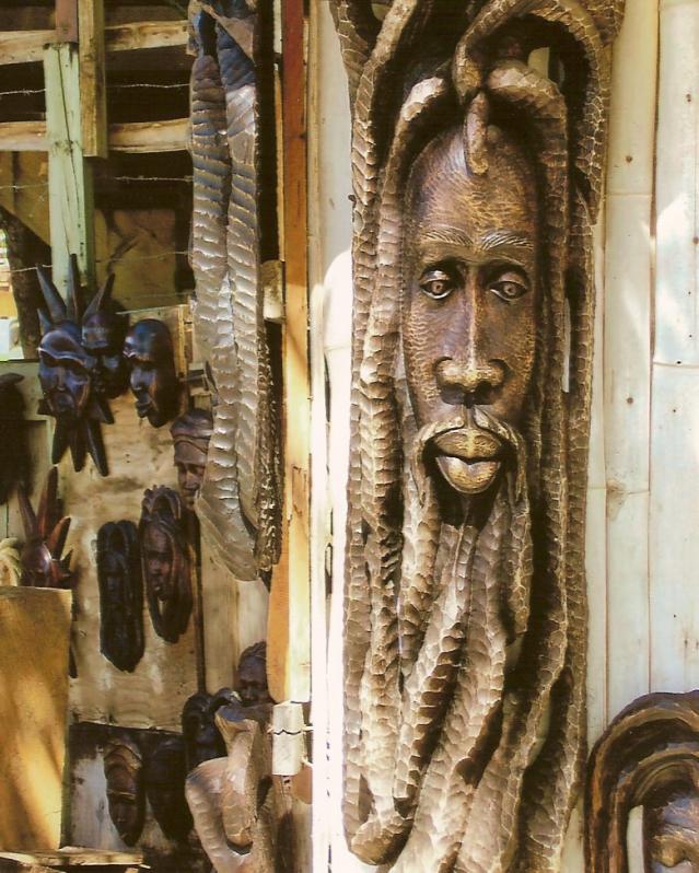 Check out Donovan at Coco la Palm. Unless his schedule has changed, he's there every day except Saturday and Wednesday. We've bought several carvings from him, including a Rasta Santa. He's a great guy and his prices are reasonable. THis is a picture of his carvings/table