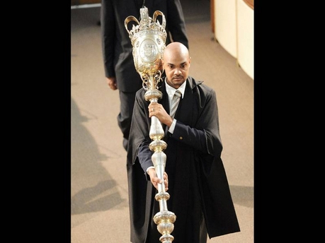 I would like to know, in the Parliament chambers, what is the large staff/sceptre lying across the table with all the books... the history, the story, etc.