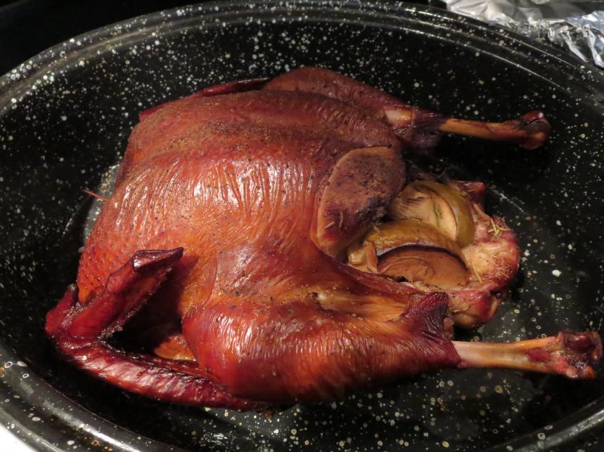 Thanksgiving Turkey from the smoker, with just a few pimento wood chips...