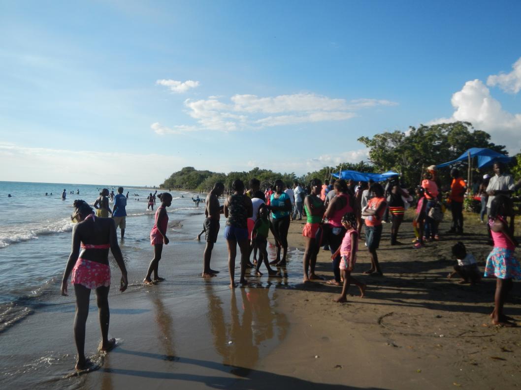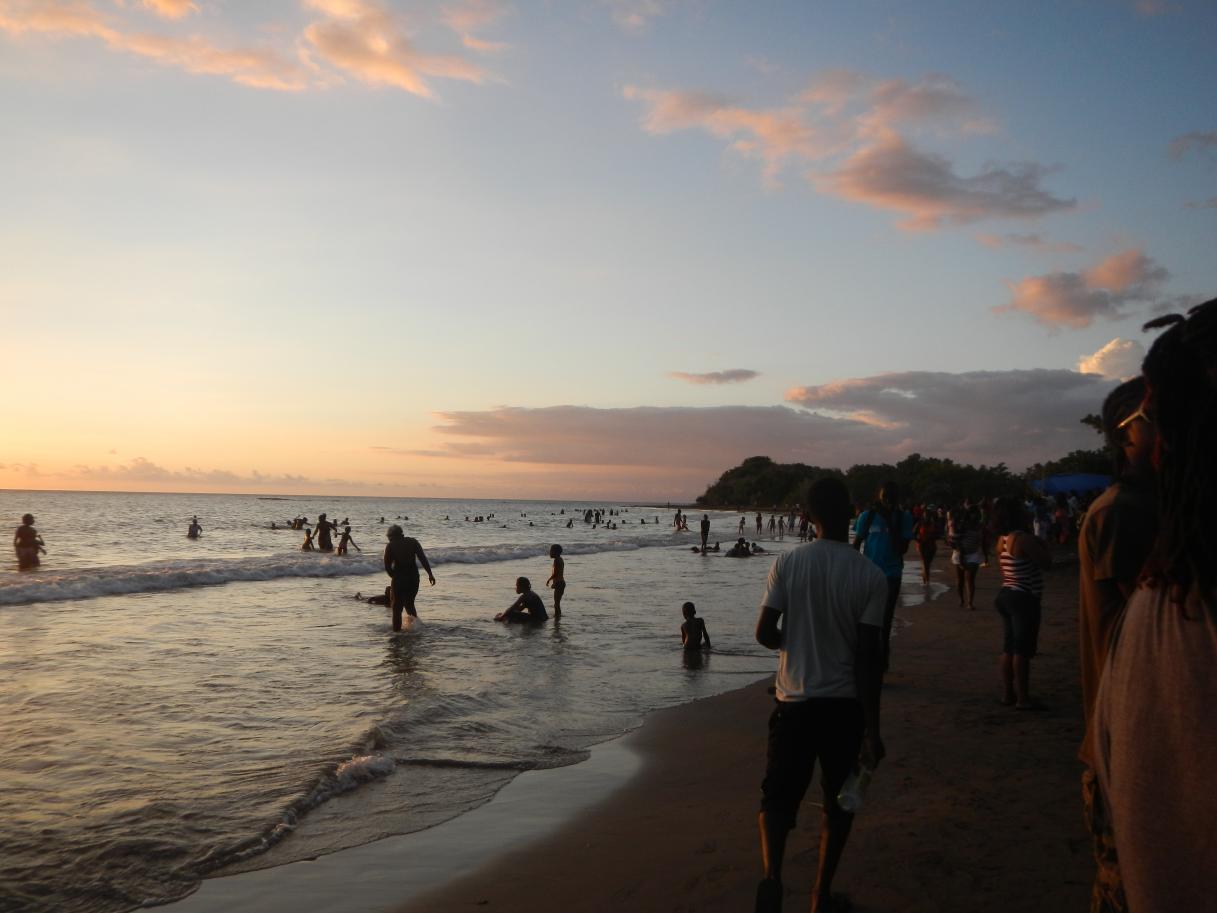 the evening sun was just setting on Treasure Beach. There was music pumping,
