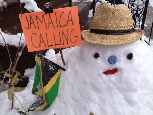 Photo of snowman hitchhiking to Jamaica