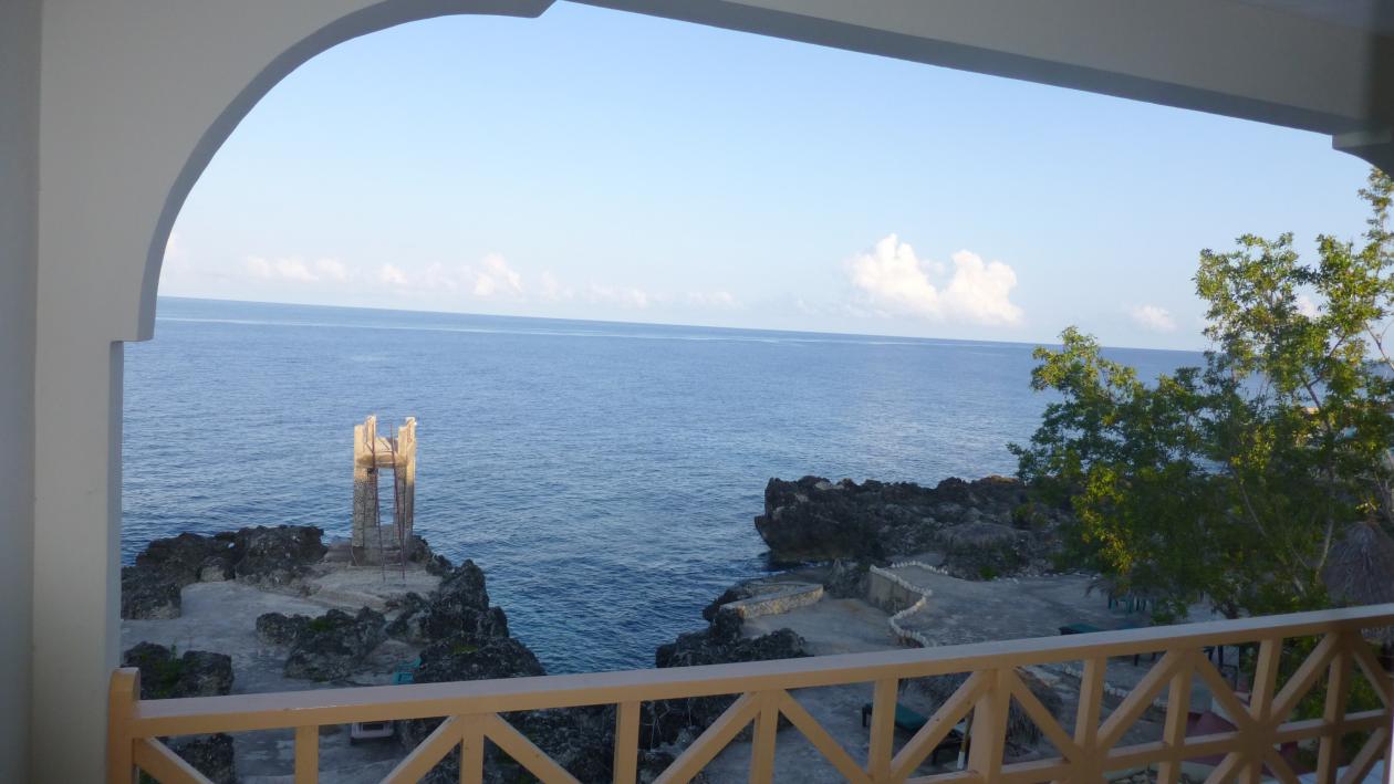 In late April 2013, we had reservations at Banana Shout for 2 nights before moving to the beach for 3 nights. We got to Banana Shout and were told they overbooked and they put us in Sunset on the Cliffs for a night (they claimed everyone else was booked). We had no interest in arguing and took the room at SOTC. Well, they must have put us in the worst room they had (I've read decent reviews of the place). For one, the shower head blew off and hit my fiance while he was showering! The only thing positive was the decent balcony view and the jumping platform into the water. We were too upset and tired after a day of traveling to argue about switching rooms so we just dealt with it for the night. In retrospect, we should have asked for a better room. Here are some photos: