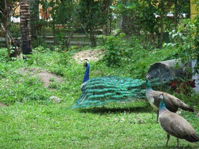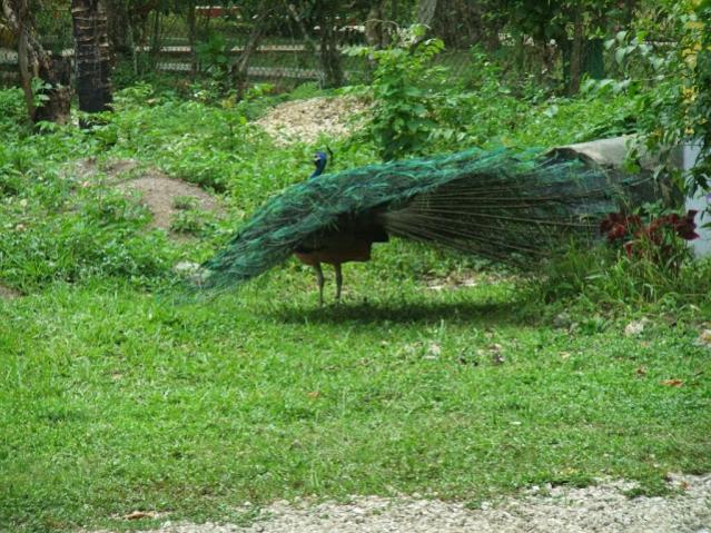When I came back the peacock was showing off a bit and his plumage is starting to fill out nicely. The blasted bird wouldn't turn around though.