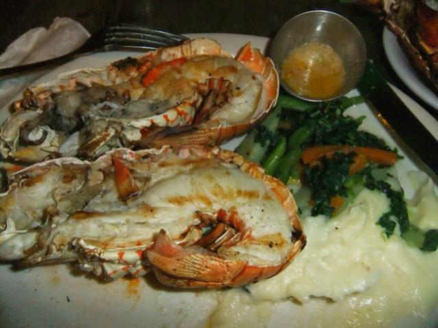 I was at Alfred's. They start with salad (lots of coleslaw) and a warm roll then the lobster with steamed veggies and mashed potatoes. They brought me a bowl of rice and peas which I sent right back LOL