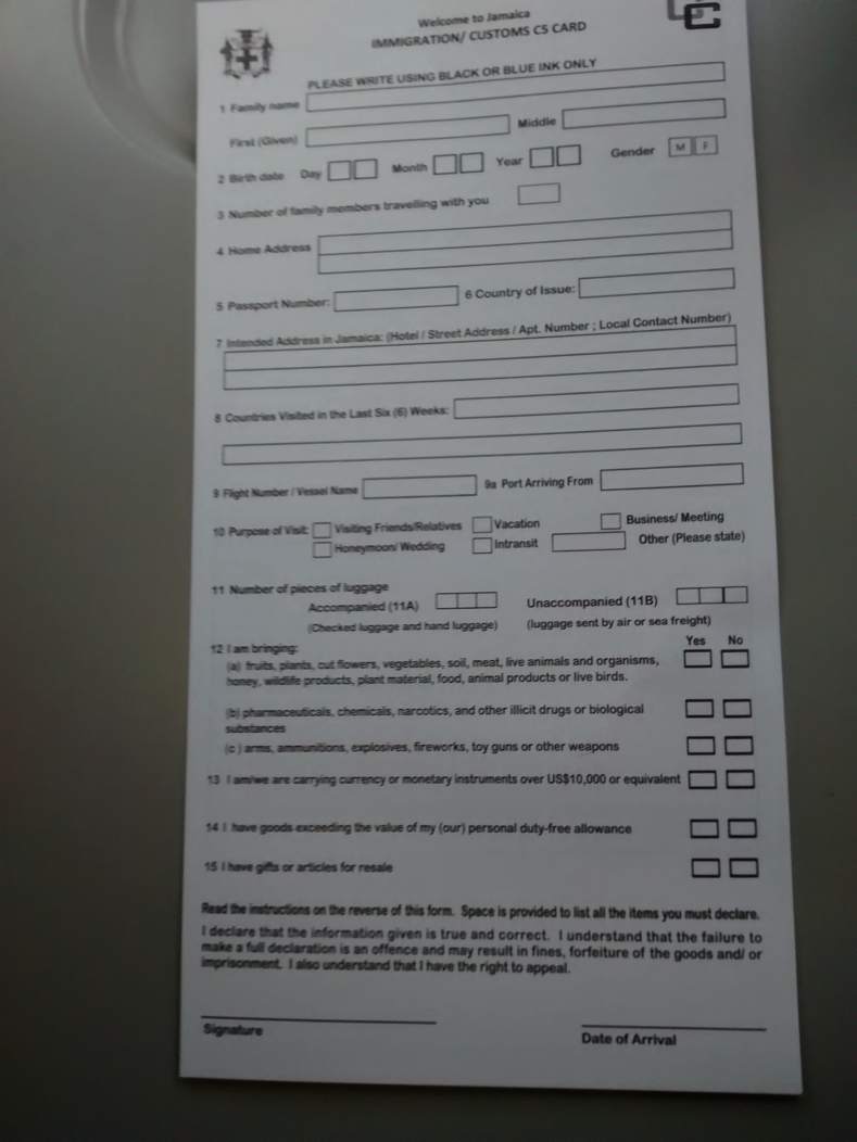 After decades of that PITA immigration and customs form Jamaica has finally replaced it!