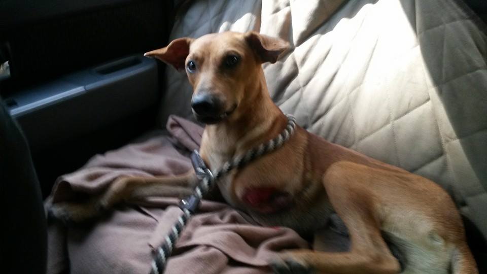 This is Friendly Fred the second dog we are raising money to bring to Canada. Unfortunately someone machete his leg. Even though he has been through so much he has never given up on humans. He has such a gentle spirit. If you are able to help our fundraiser it would be greatly appreciated.
