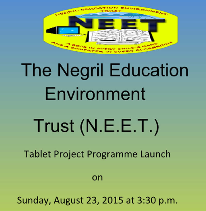 NEET Tablet Programme Launch tomorrow at 3:30pm on RealNegril.com at Travellers!