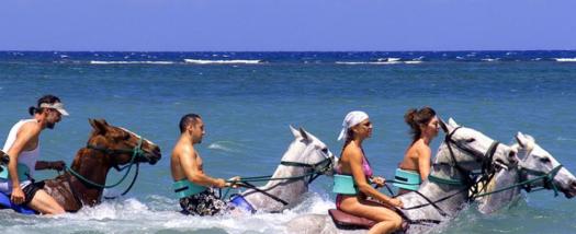 "Your adventure begins with a spectacular horseback ride through Jamaica's backcountry. You will pass farmland, explore the ruins of an 18th century sugar plantation and hear tales of Jamaica’s colorful history. Then experience an unparalleled, exhilarating bareback ride into the warmth of the Caribbean Sea atop your swimming horse.