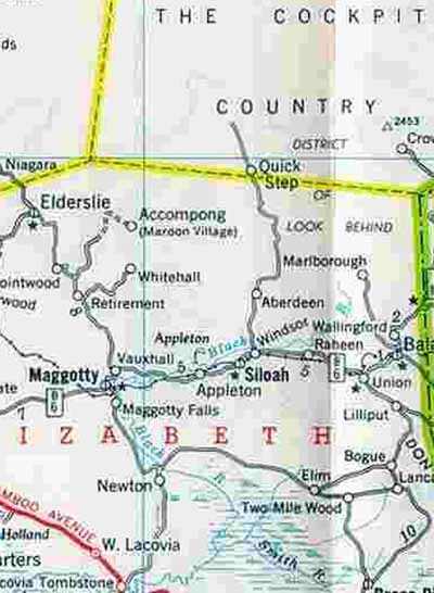Accompong Town is in St. Elizabeth near the St. James border about 45 miles due South of Montego Bay