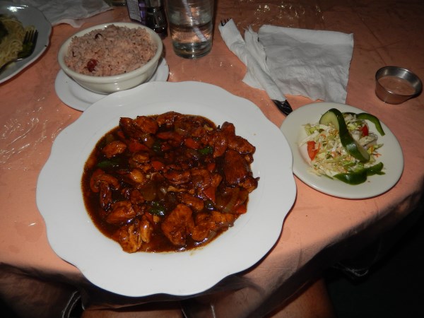 We packed up our stuff (moving day to Blue Cave Castle) and left it in the office of Mirage. We took a route taxi to the bus park and quickly grabbed a route taxi to Sav. At little London traffic was all back up because of an accident. An older man was hit by a van and lie dead just off the side of the road with a sheet over him. So very sad. When we got to Sav, our taxi driver said he would take us to Strath Bogie for 300 J extra. So he left us off at Calvary Baptist Church of Strath Bogie about 15 minutes before the service was to begin. We recognized a number of people from our previous visits, but were shocked to see some friends from the states who also worship there when in Jamaica. After the service they had a full blown pot luck dinner. The food was fabulous and for the first time we had June plum drink. If you have never eaten a June plum, they have a unique and to me a very satisfying taste. When we got back to Negril we transferred to Blue Cave Castle where we unpacked and headed right for the water. There have been some upgrades at the castle and this was the first day they were open. Watched another goreous sunset and headed over to Pablo's for dinner.
