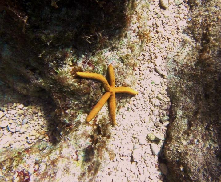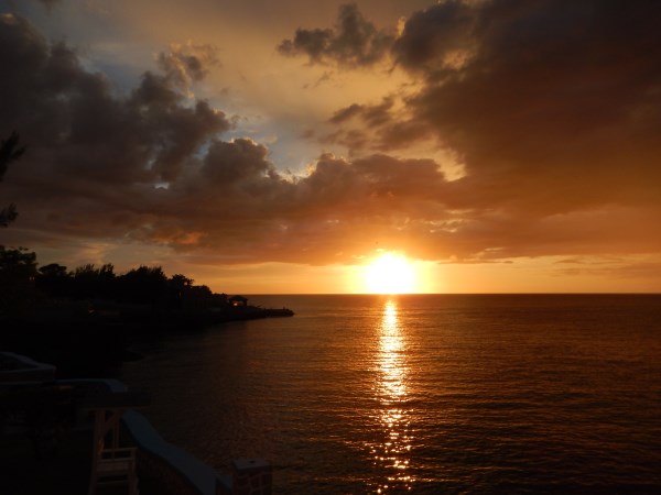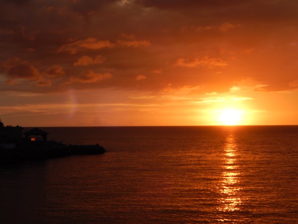 Well, the camera has been giving us a little trouble. About 3 days ago on the viewing screen it started turning a little purple in the lower right corner. Yesterday about a third of the screen had this deep purple hue. This morning the screen was black....nothing. Now we can still take photos, we just can't see what we are taking them of!!! Unfortunately we can't change any of the settings so the sunsets are not coming out like they should. We will have to get a new camera when we get home. The underwater camera is a cheapie too. So all photos from here on out are hit and miss, pure luck. Did a little snorkeling this morning near Blue Cave Castle and saw lots of fish and a few starfish. Saw another great sunset and I had some oxtail at Pressa's. Yummy!