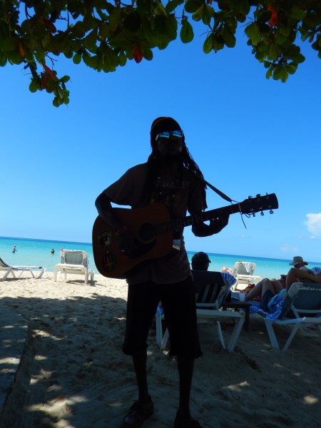 Five years ago Janet and I sat on the beach looking for a musician to play at our daughters wedding in May 2011. We found a fellow we liked by the name of Iratio. He was well mannered, spoke well and could play and sing pretty gook too. So we struck a deal for him to play. Everything came together for the wedding, but we hadn't heard from Iratio and the wedding was about a week away. As it turned out, someone on negril.com got us in touch and and he did a great job at the wedding. I always wondered what happened to him. Well, today I found out. Sitting on a lounge at Coco la Palm I saw Iratio walking down the beach with his guitar. He said that every time he goes past Blue Cave Castle he remembers the beautiful wedding. He sang us a few songs on the beach today, one an original and the other a love song. Even the people around us ponied up a few bucks because they like his music so much. So we broke out our camera (the one with the broken screen) and a fellow attempted to take a photo. Wow, he did a great job. I took a few shots and a short video too.