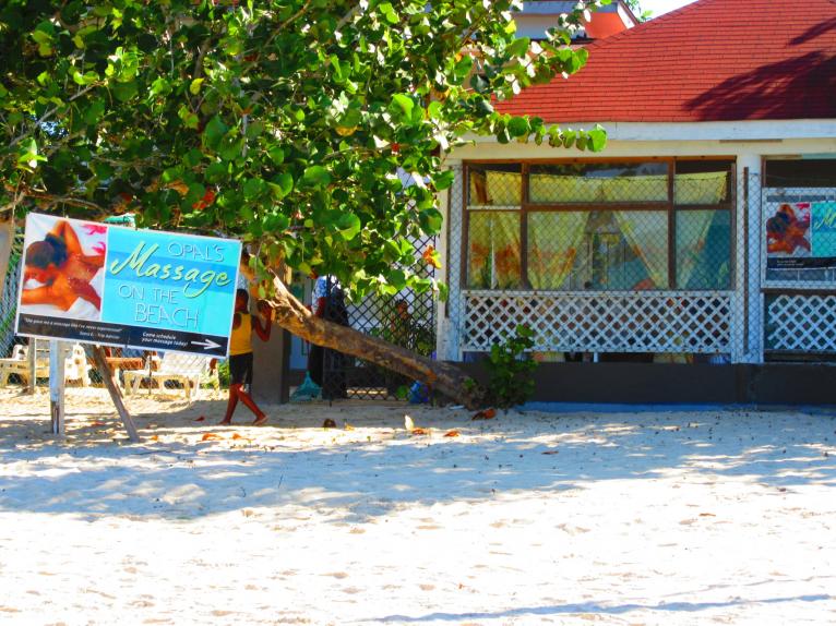Today I wandered in the opposite direction and there was lots to see. I did see a guy with scuba gear which is unusual on the beach. There were many colourful places too as well as a few massage areas for when you need them.