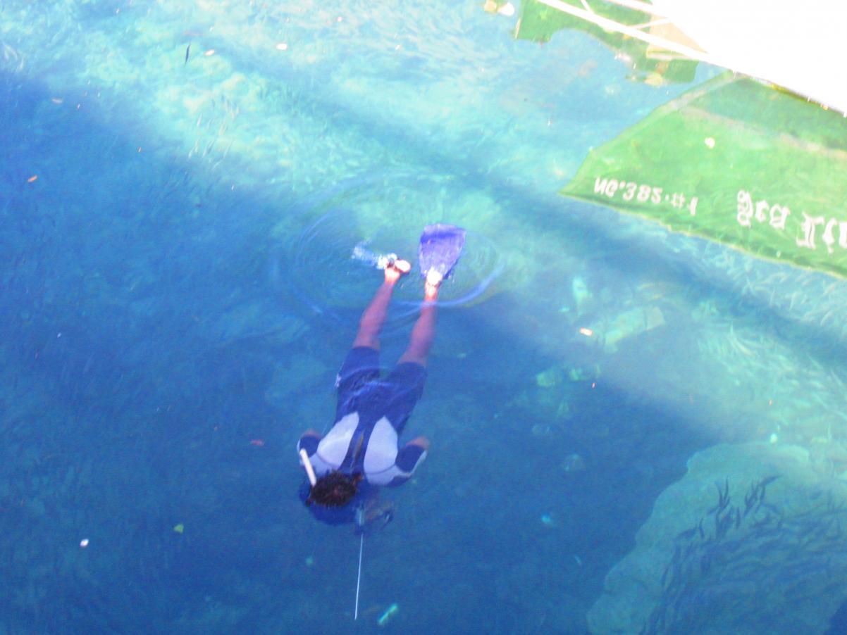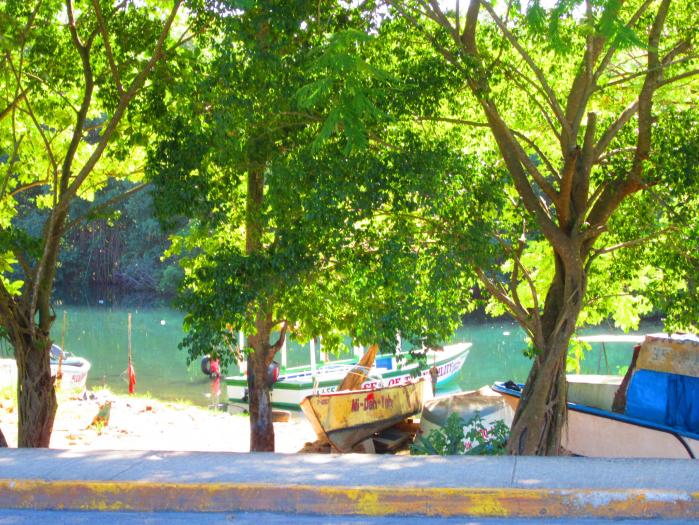 After I was finished I walked over the bridge to get a taxi back. I got some shots of the Negril River. I did wonder what a guy with a spear gun could find in the water around the boats although you can see some tiny fish around him.