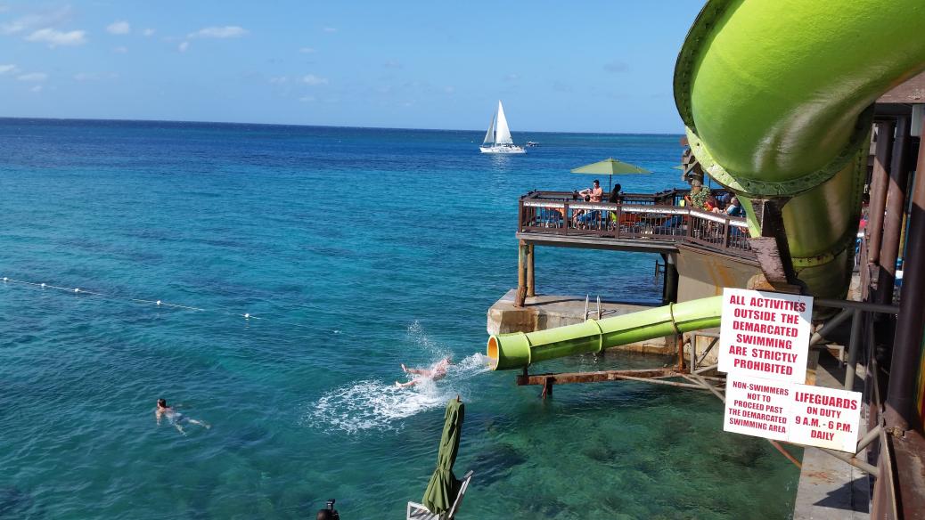 travel day is always long and exhausting...in bed about 2am up by 530....arrive in mobay at 215....i have about 1.5 hours until my boy Baby Face arrives....the boys have a couple days together until our wives arrive...I havent ever spent time in Montego Bay, so I have our driver (Driver name removed as they are not a legal taxi) drop me off at Margaritaville in mobay...i was gonna walk the beach there...but no beach...just concrete and rocks....a few pics from Jimmy Buffets Margaritaville, Mobay...