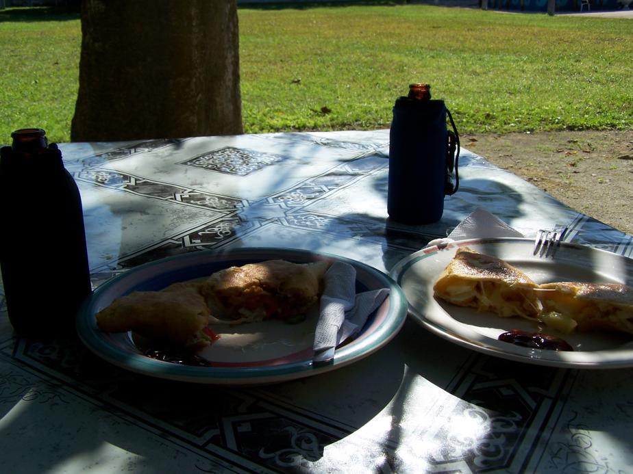 Back to the beach we were getting a hunger so we decided to head down to Niah’s. I enjoyed those patties in the past, but my husband didn’t quite have the same recollection as I did. I suggested he try a different one so, according to what was available this day- we had an Irish and an Italian. The Irish was pumpkin and potato and spices and the Italian was tomato, cheese and spices (garlic, onion etc.). Those were delicious! The flavor was bursting in our mouth. The Italian happened to be our favorite. It was much like a panzerotti, or a calzone. Those delights were crispy on the outside and so full of tastiness on the inside. They went down with a Red Stripe very well.