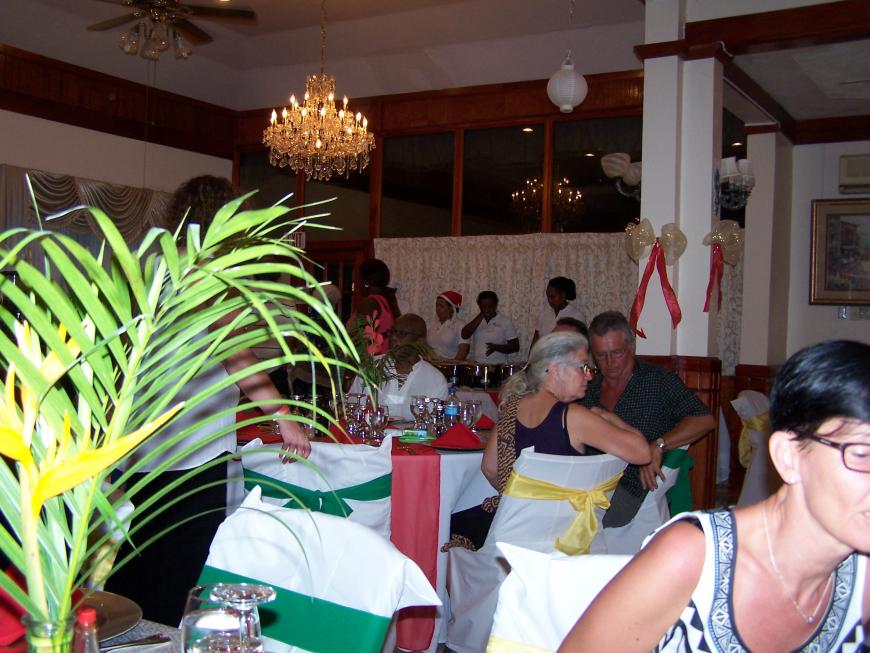 Christmas dinner was at the Rayon hotel. It was an extravagant event. We started with cocktails and went over to the lovely banquet hall. The room was beautiful and all of the staff put in extra hours to make it such a special time. One of the guests contributed to the occasion and helped to make it so memorable. We got to try so many delicious items that we wouldn’t normally have the opportunity to try. This was a great way to spend our last day in Jamaica. Attachment 43872