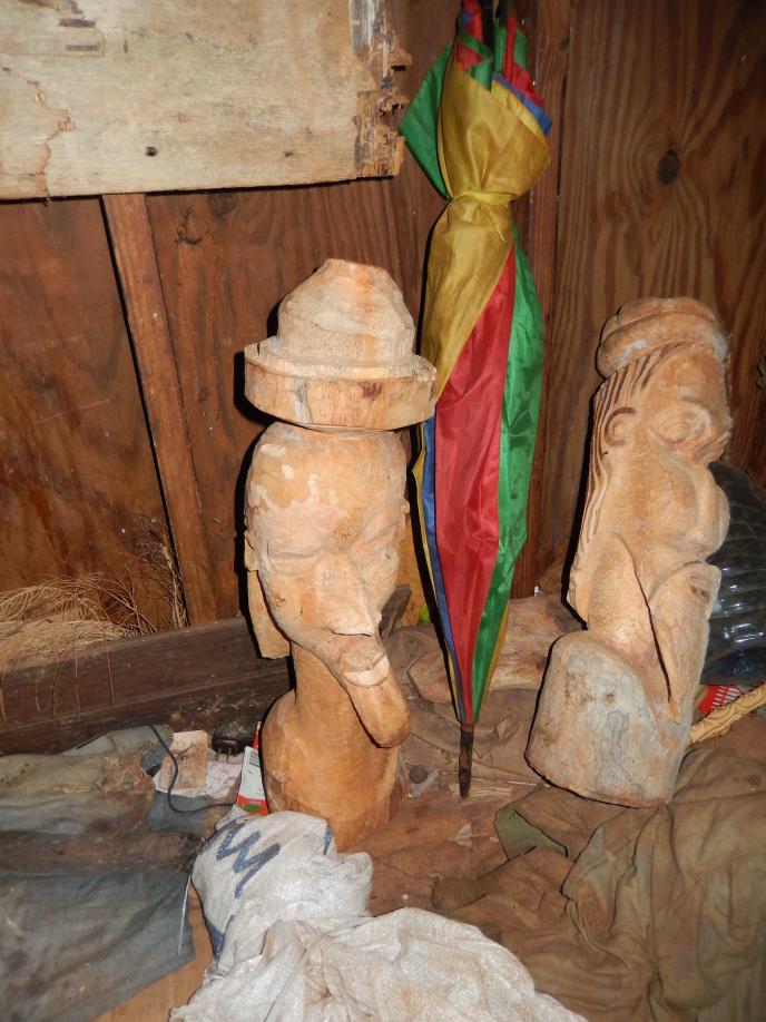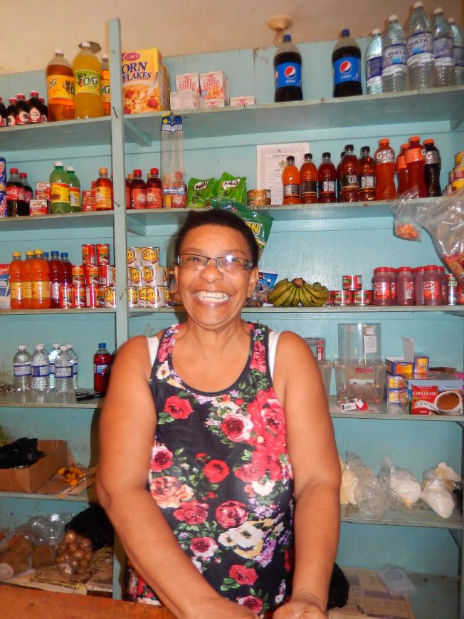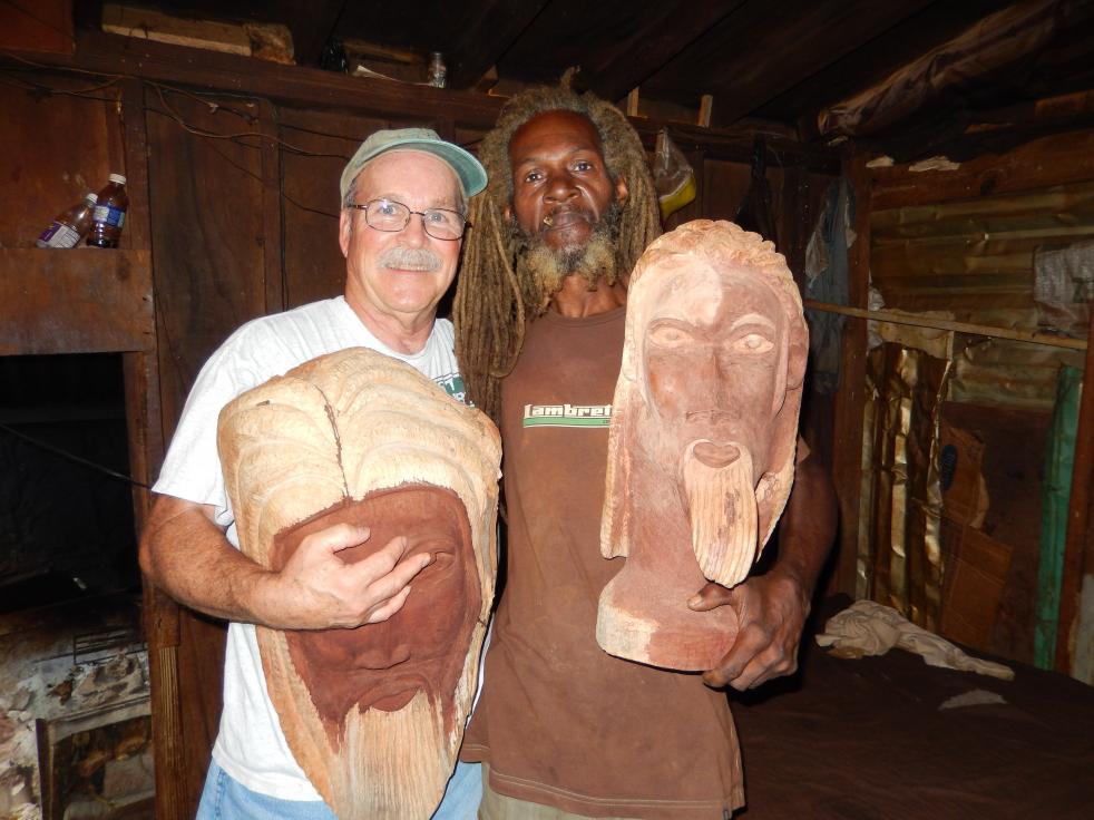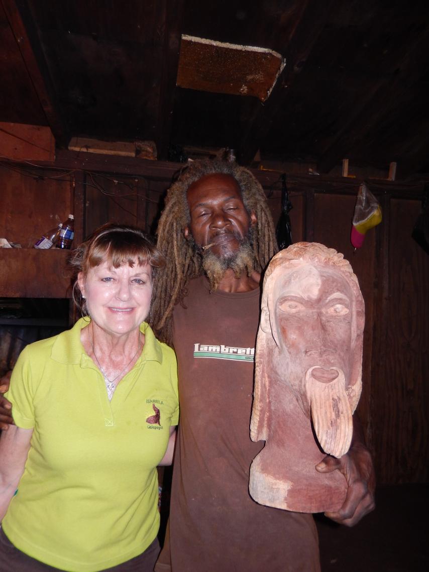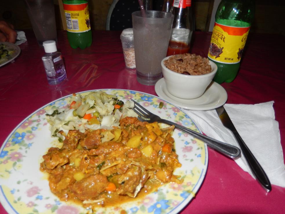 Stopped up to see our friend Markie in Red Ground. Took him a pair of sneex, and checked out his wood carvings. He gave a a nicely carved lignum vaite carved spoon. Also stopped in to see Miss Alice and brought her a little photo album of the cave beneath her store. Ate dinner at Colette's and it was very good but the boniest curried goat I ever had.