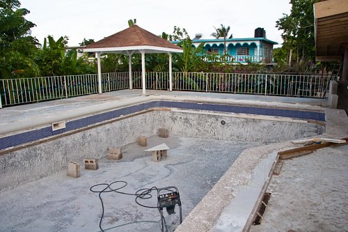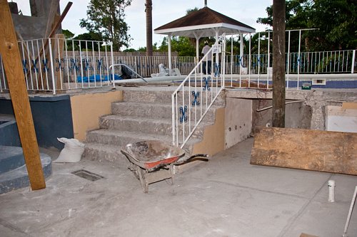 I visited Seastar Inn today to see how things are moving along. The flooring and stage area has been floated, and now the pool, jacuzzi and surrounding area is being resurfaced. Francine's Gift Shop is progressing nicely. Can't wait til the new bar is in place. Please enjoy the pics of the pool area, gift shop, dining area, stage and a view from across the street.