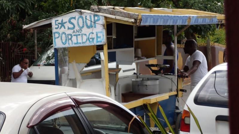 Cosmos red pea soup & Red Stripe beer...