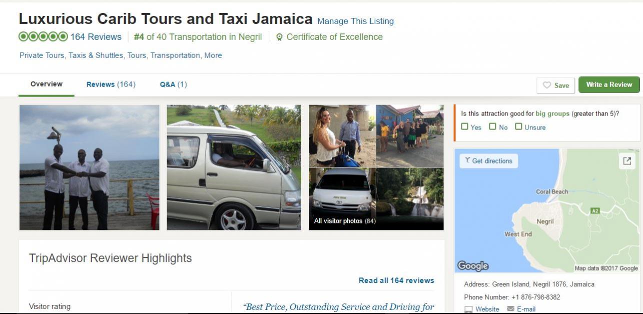 Top 4 on TripAdvisor. Total customer Satisfaction is what we are all about at Luxurious Carib Tours Jamaica. Safe, Reliable and inexpensive private airport transfer and tours.