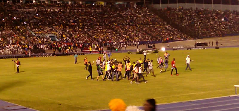I am not sure who enjoyed it more, Usain or all of the fans! The bow he gave to us was visibly sincere and, well horns pretty much say how we all felt. A great moment in Jamaican history!