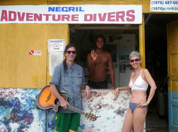 In addition to becoming one with the sand, we did get out to snorkel (saw lots of sea life including a HUGE Manta Ray) and enjoyed a one-tank dive with Negril Adventure Divers - see our Dive Master in the photo.