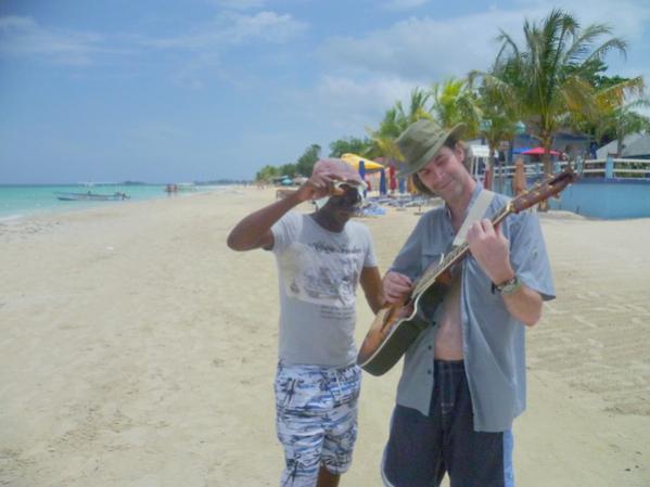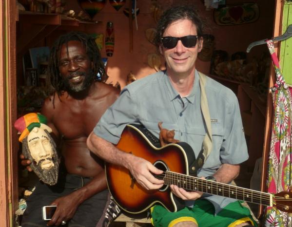 I'm wondering what Negril is like, now, in the "on" season - the people watching must be spectacular! The only place that was relatively busy while we were there (July 2-8) was Push Cart and Roots Bamboo - we were at both in the evening, rather late, so that must be the regular time to be out for some music, food and drink. I was incredibly bummed that Boat Bar was closed during out visit - had hoped for some musicians nearby with whom Drew could jam. He did okay finding bands willing to let him join, however, and then enjoyed walking the beach while playing! He is always happy to accommodate requests for a tune. Lots of locals request Bob Dylan, incidentally. One fella explained that Jamaicans can relate to the lyrics.