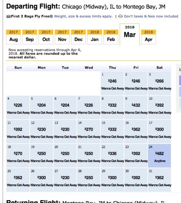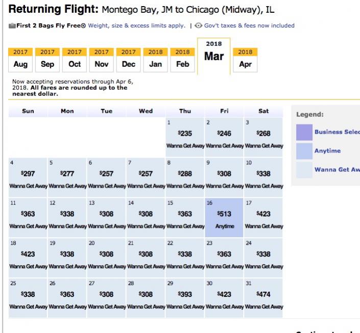 Here's the present fares on Southwest. Just go to the Southwest site and go to flexible dates and you'll get this calendar. Keep checking every day, especially Wednesdays You'll find a good fare for your dates sooner or later.