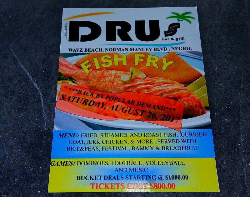 Dru's at Wavz is having his Fish Fry on Saturday! For J$800 you get fried, steamed, roast, curried goat, jerk chicken and jerk pork with all the fixings!