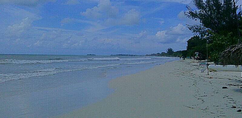 The beach had taken the usual storm hit, with sand being drawn back into the Caribbean and seaweed deposited in its place. Workers at many places spent time burying the seaweed before it had time to decay and produce it's wonderful aroma. This is the new standard operating procedure to promote beach accretion.