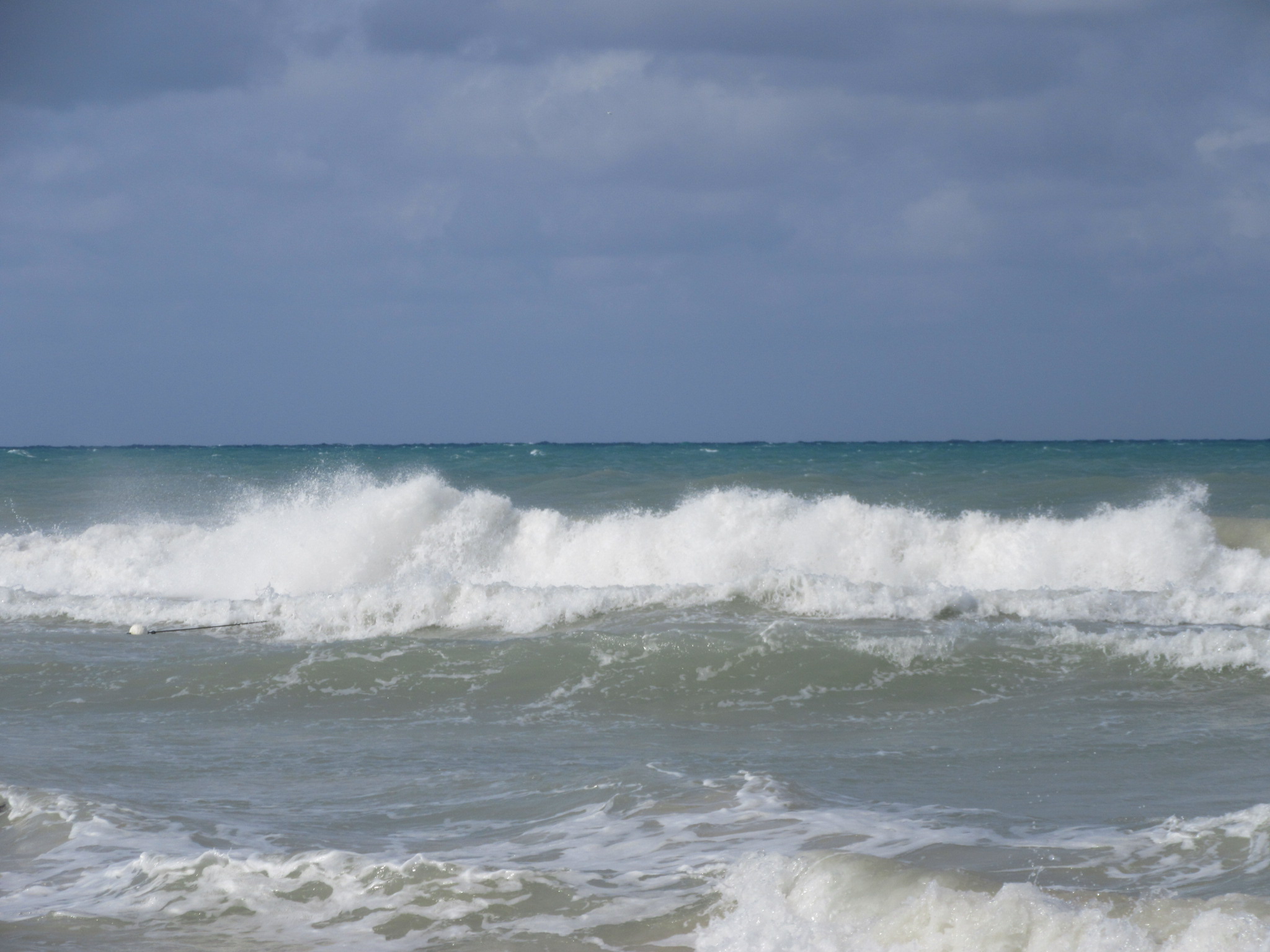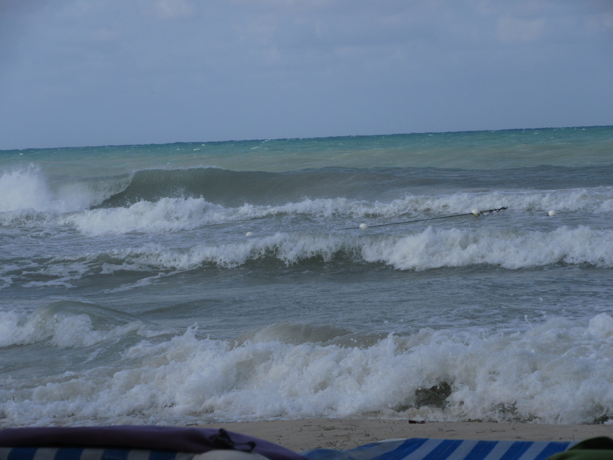 Last night the wind was blowing and I could hear the sea across the road. When I woke up it was cloudy so I hung around a while. Once I got going I saw that the sea was encroaching on Alfred''s leaving piles of sea grass in it's wake. I have seen more but this was a change from yesterday. Only one boat was out and only a few kids were in the brackish water. Gone is the sea of blue for now but we all know it will soon return.