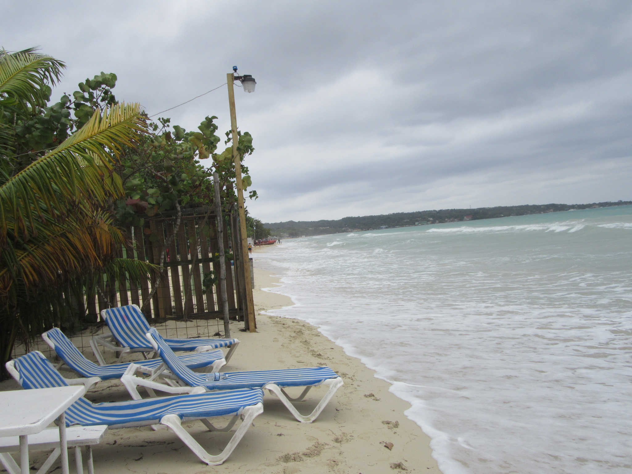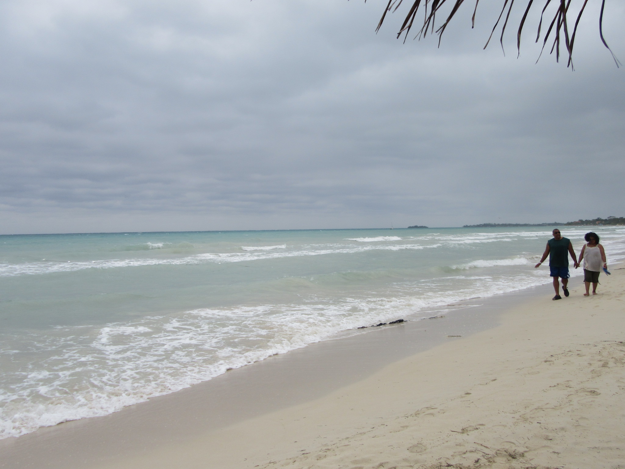 A few hardy souls are huddled on a beach chair covered with towels. Tourists are nuts sometimes LOL