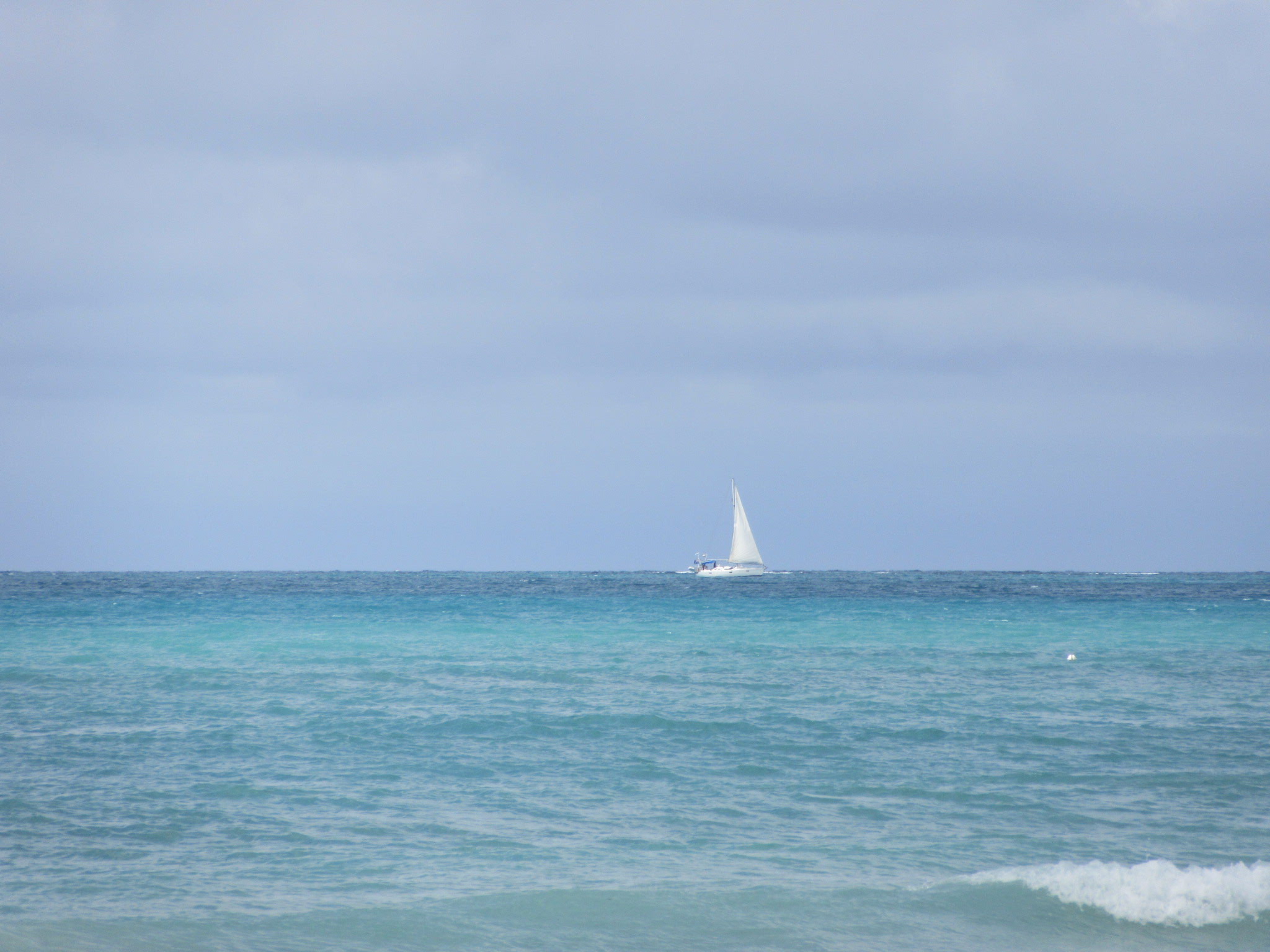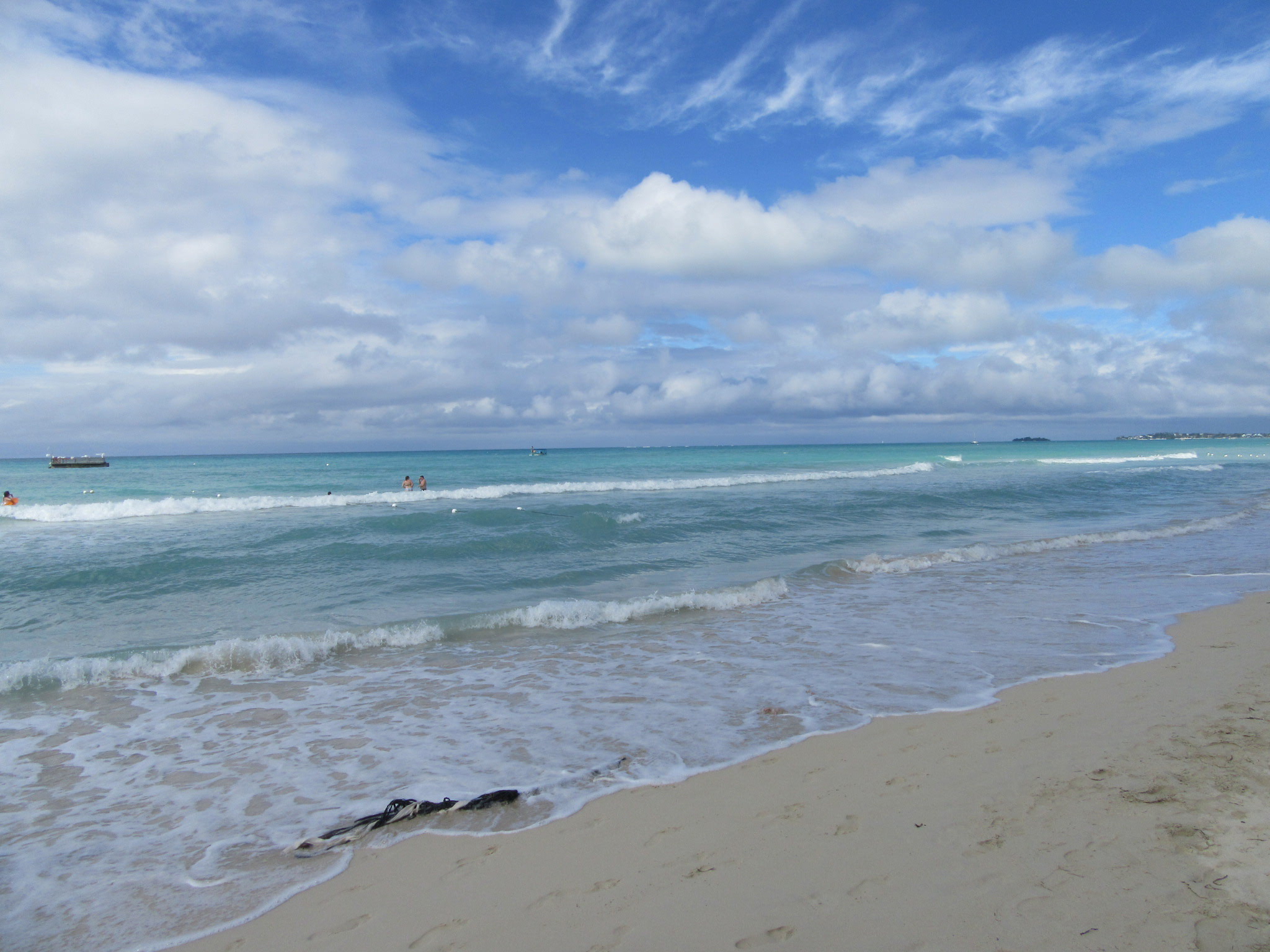 This morning was still cloudy and cool so I stayed put. A couple of hours later I saw a yellow thing in the now bluish sky. Venturing out I realized that it was sunny and not too windy! The beach looked good when I got there and, once again, the chairs were occupied. The water was returning to it's well known colours and all was well with the world.