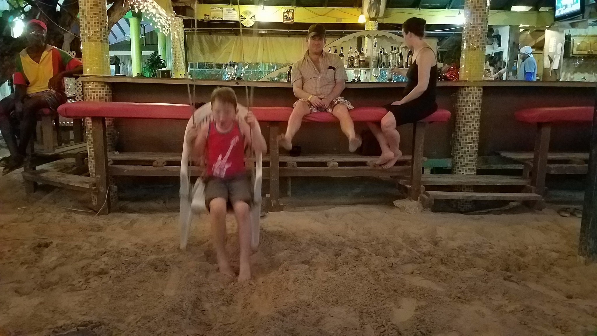 • Dudley’s was right on time Sunday morning. He took my wife and sis in law to MBJ where they flew out. The boy and I had another night in Montego Bay. We stayed at Tobys, walked to Margaritaville (much better option than the one in Negril), where we slid down the giant water slide, ate lunch and people watched.