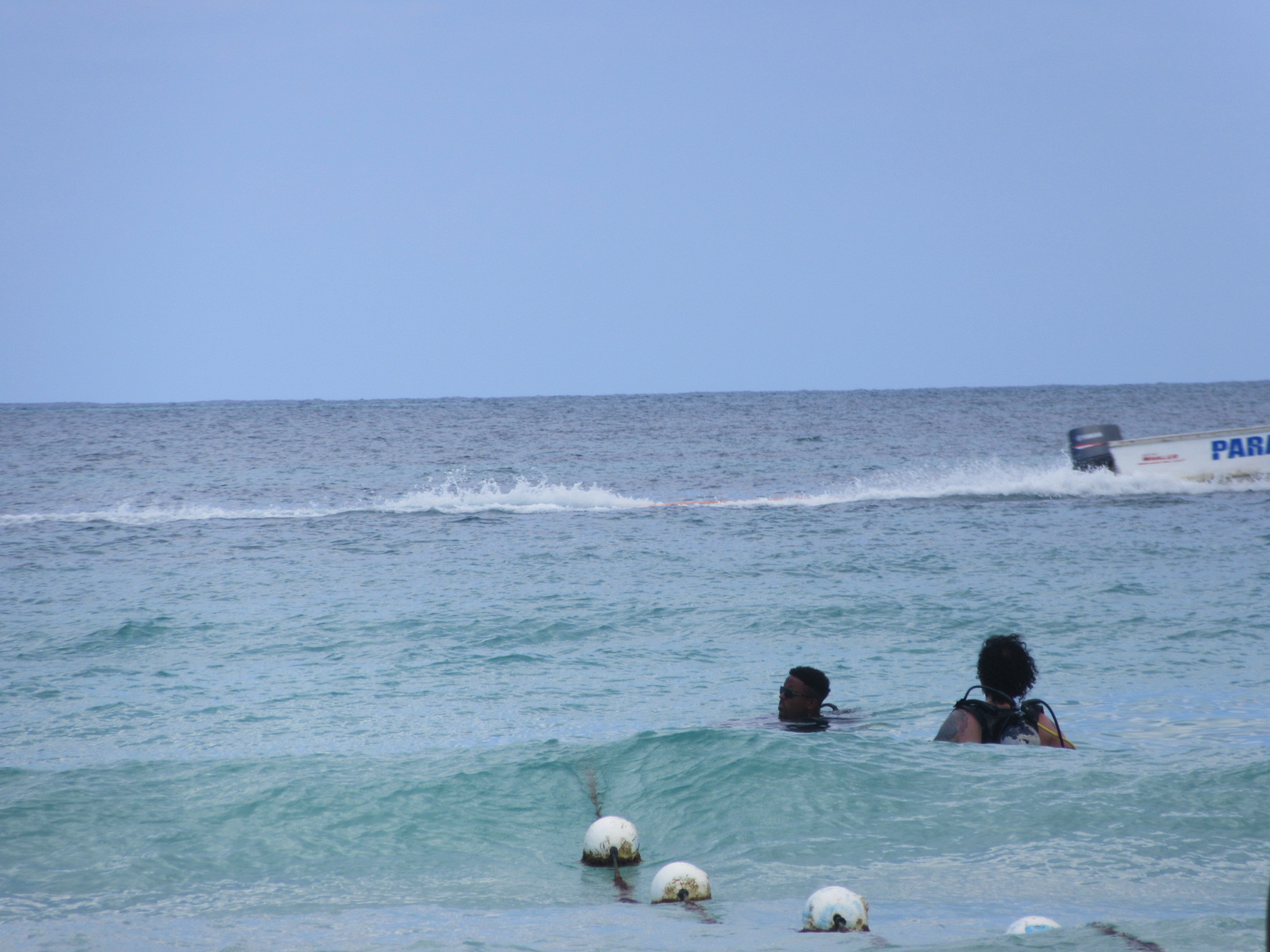 I saw a lot of families today having a great time. There was a diving lesson going on as well The water started off calm and cool but around noon it started to get wavy.
