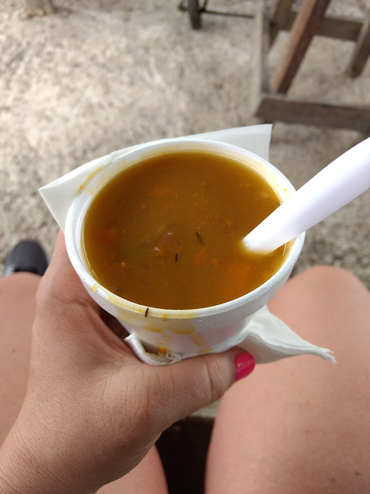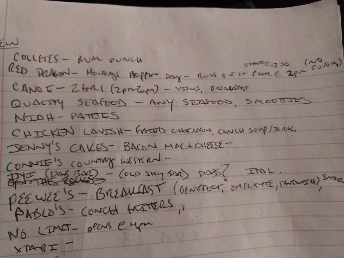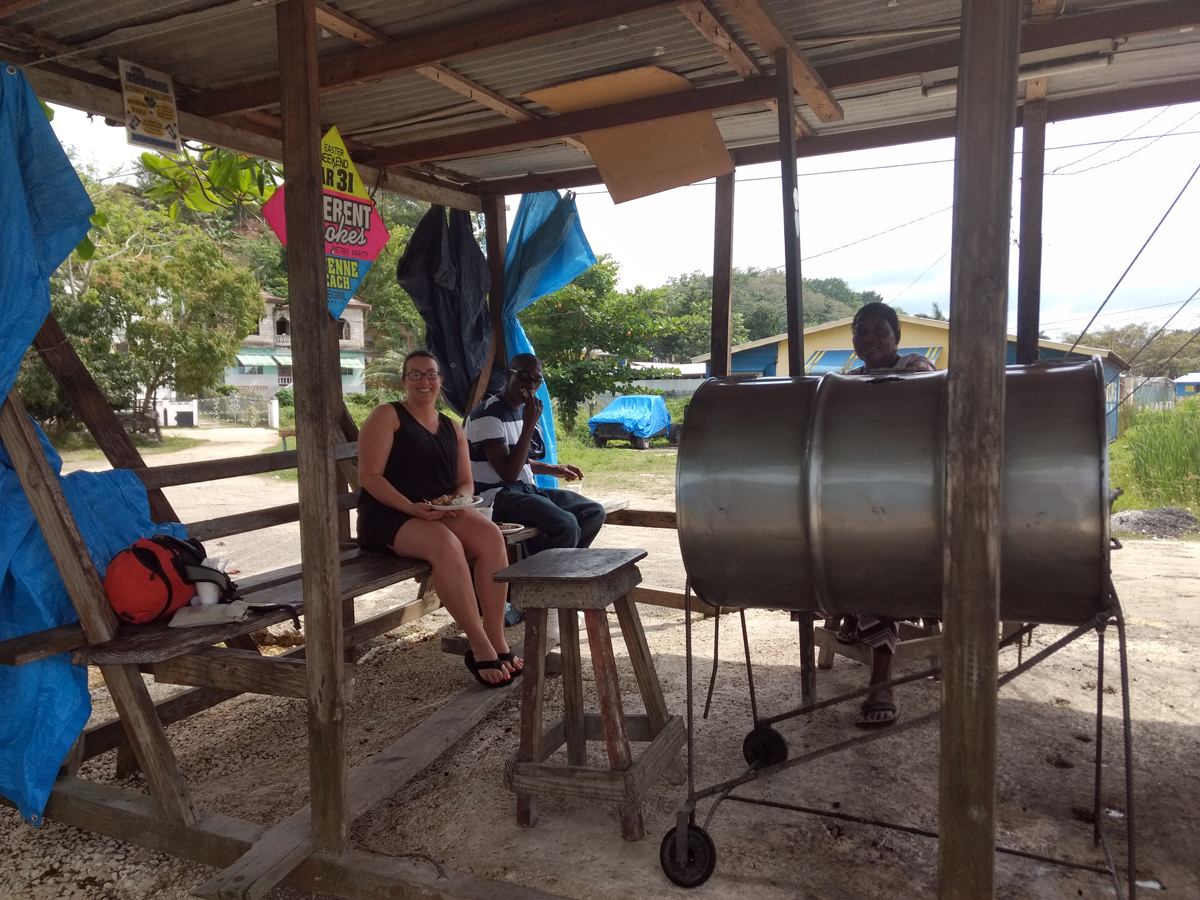 Bigga’s turned out to be outstanding. All three of us dove into the conch soup and chicken while Bigga’s wife sat in front of us on her stool. Her patois is so thick I really had to focus on what she was saying. The vibe was super friendly. A few local kids stopped by the counter side of the hut and enjoyed their chicken. I’m not big on spicy foods. Bigga’s sauce is served on the side, but I overserved myself due to the amazingly rich flavor. The breeze blowing off the bay in Green Island cooled my sweaty brow. Linston mentioned out loud how hot it was. I came clean that I agreed but hadn’t wanted to out myself. My lady went into the house to use the bathroom while I grabbed a couple waters and settled up the bill. Three lunches only totaled 2700J. We washed our hands under the spigot and moved on.