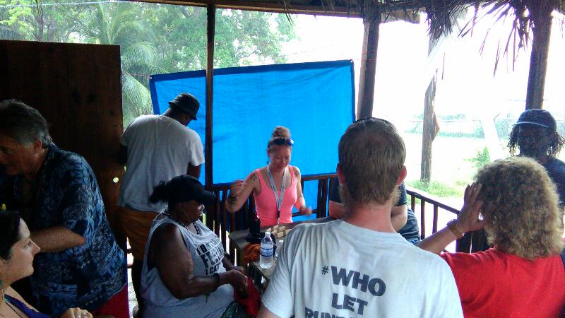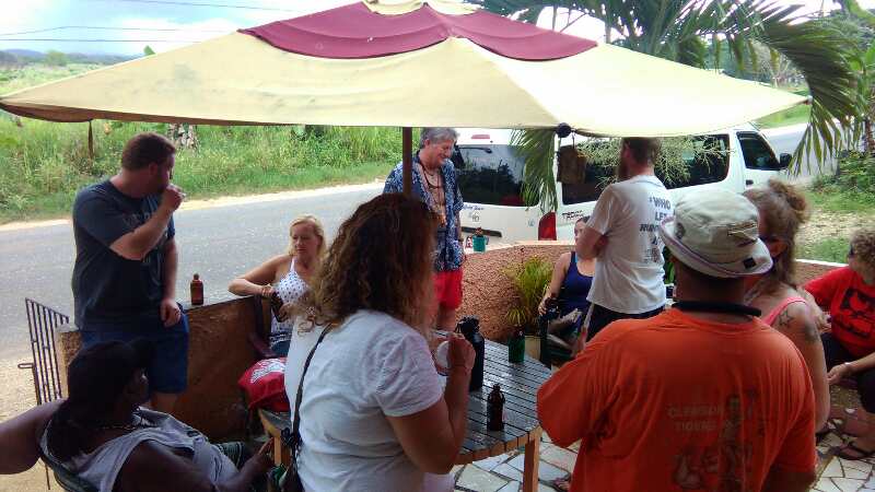 I forget to take a picture at the stop at Negril Spot but the next stop is a fun one at Hillside Chillspot Bar & Grill! Redskin (of 3 Dives, DeBar and Kool Vybez) provided the spices jerk chicken! And the dominoes are slapping the table!