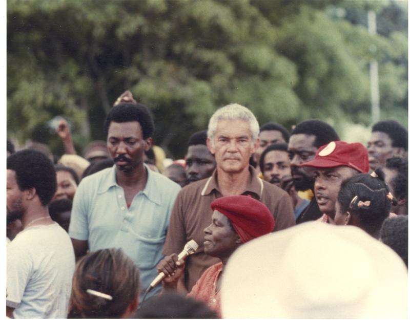 Hi Odinson thanks for your big up on the photo and I applaud your observation that Mr. Manley is staring at me. To understand completely the situation you must understand the turmoil and violence that accompanied the 1980 elections in Jamaica. The PNP and JLP, the two political parties, fought tooth and nail with guns during this time. There were very few tourists on the island at this time because of the negative publicity worldwide. MM came to Negril the day before the election and there was a rally held by the roundabout and I was one of about 5 foreigners in the crowd and the only one with a camera. I had several people try and prevent me from shooting pictures. To this day I wonder what Michael was thinking as he stared over at me. I believe from what I now know that he thought I was from a foreign group infiltrating the rally. Visible security was almost nonexistent so it would have been quite an opportunity for violence. Rasta no CIA, Oh what a rat race!!