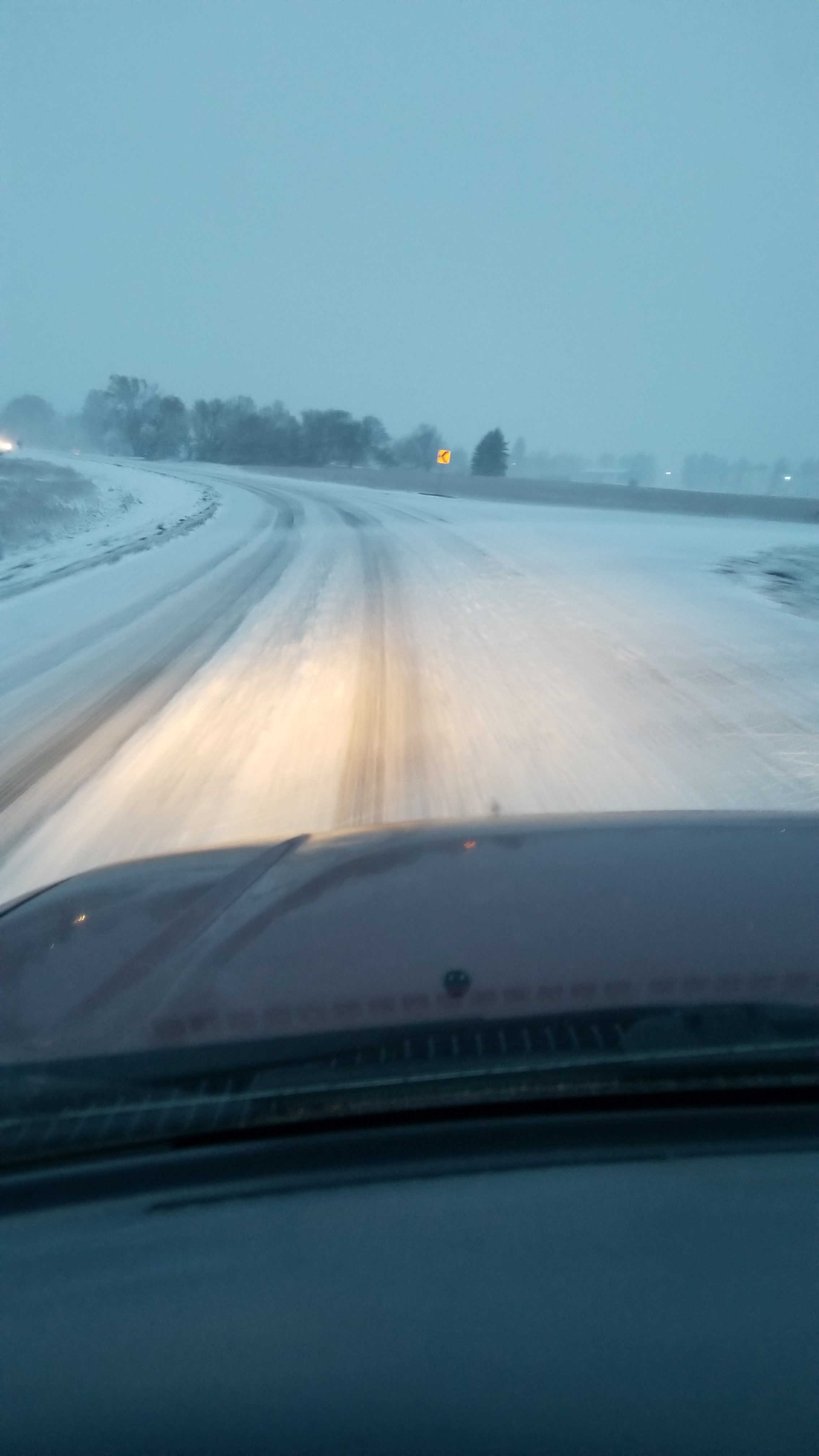 My commute this morning. Northwest of Fargo, ND. We have over 5 inches already and it's still coming down!