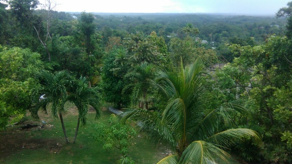 This is the view across the valley from Zion Hill this morning. Right over that hill is the West end of Negril