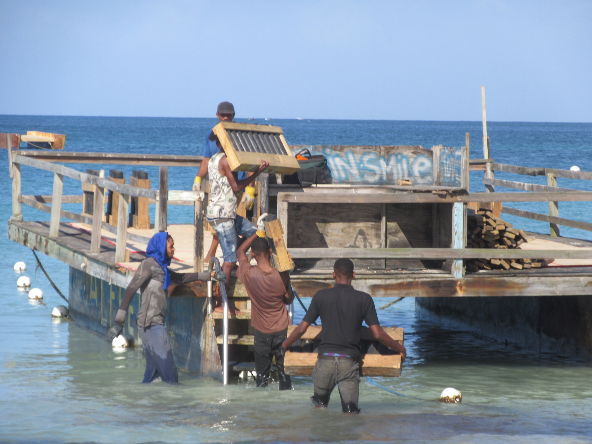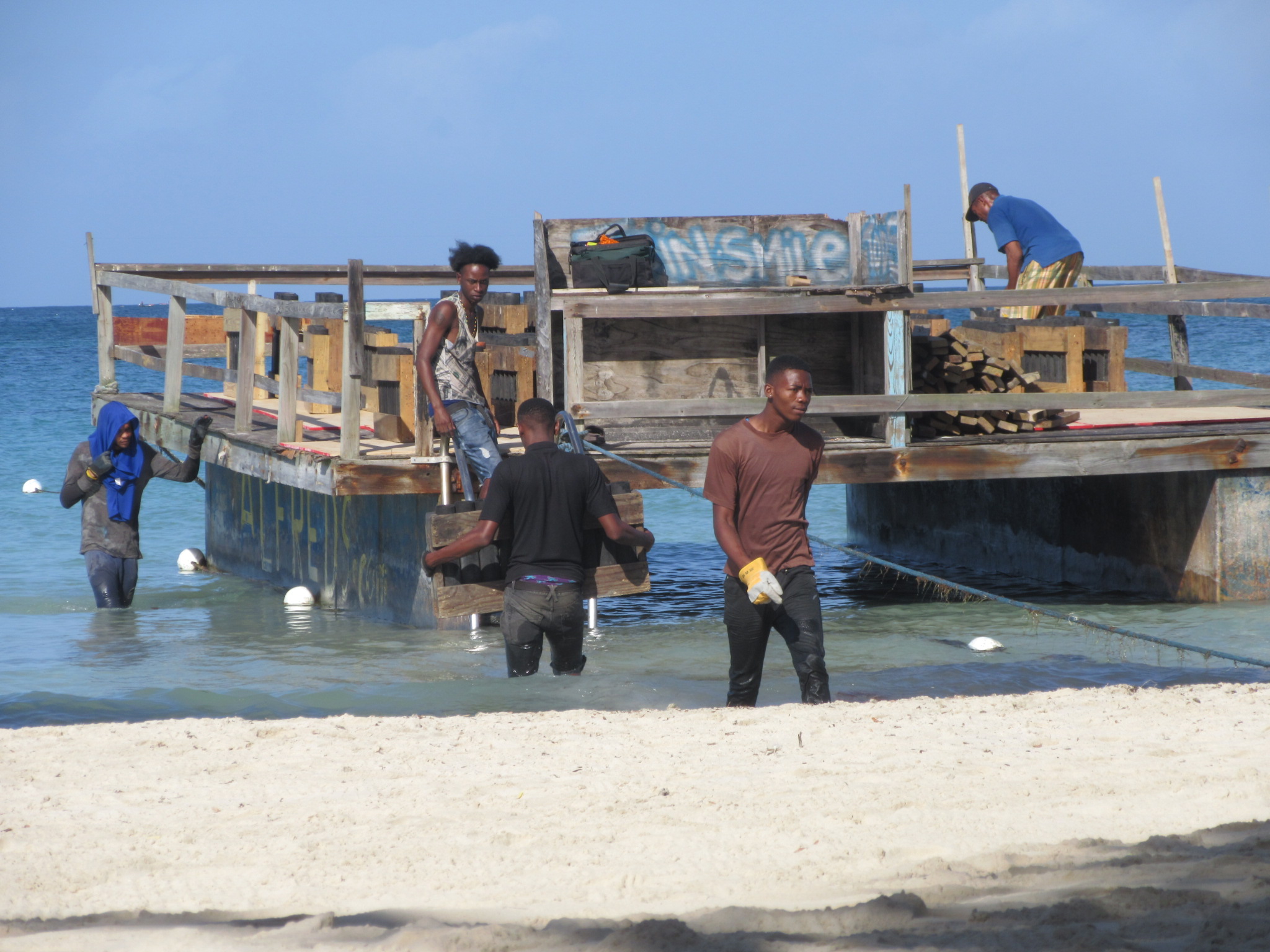Alfred's was preparing the rafts (Yep 2) for the big party tonight. The old one is being towed up the beach and the new one will stay at Alfred's. This year the fireworks were paid for by a number of hotels and organizations thus 2 displays. It should be fantastic.