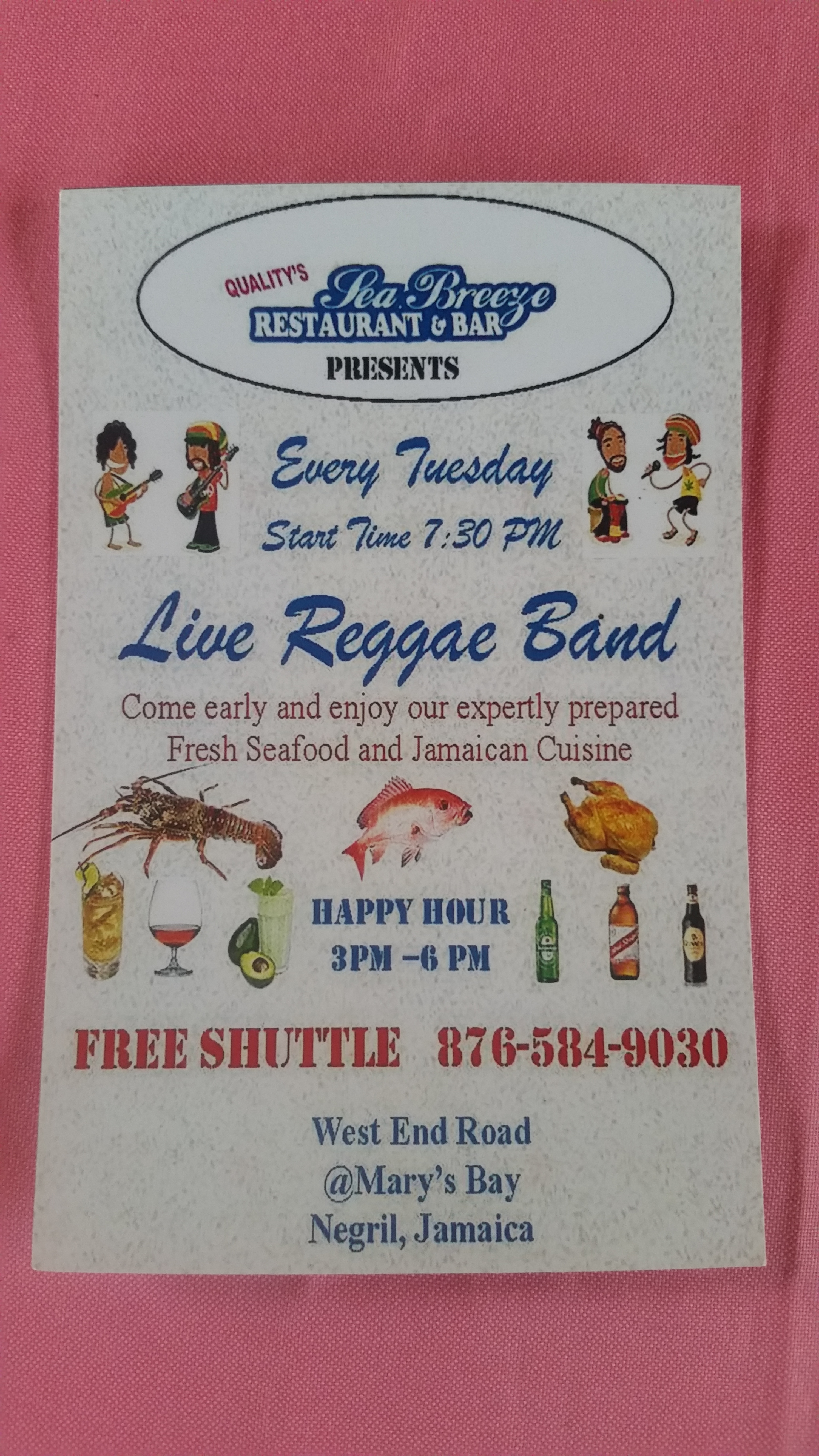 live reggae band tonight start at 7:30PM.