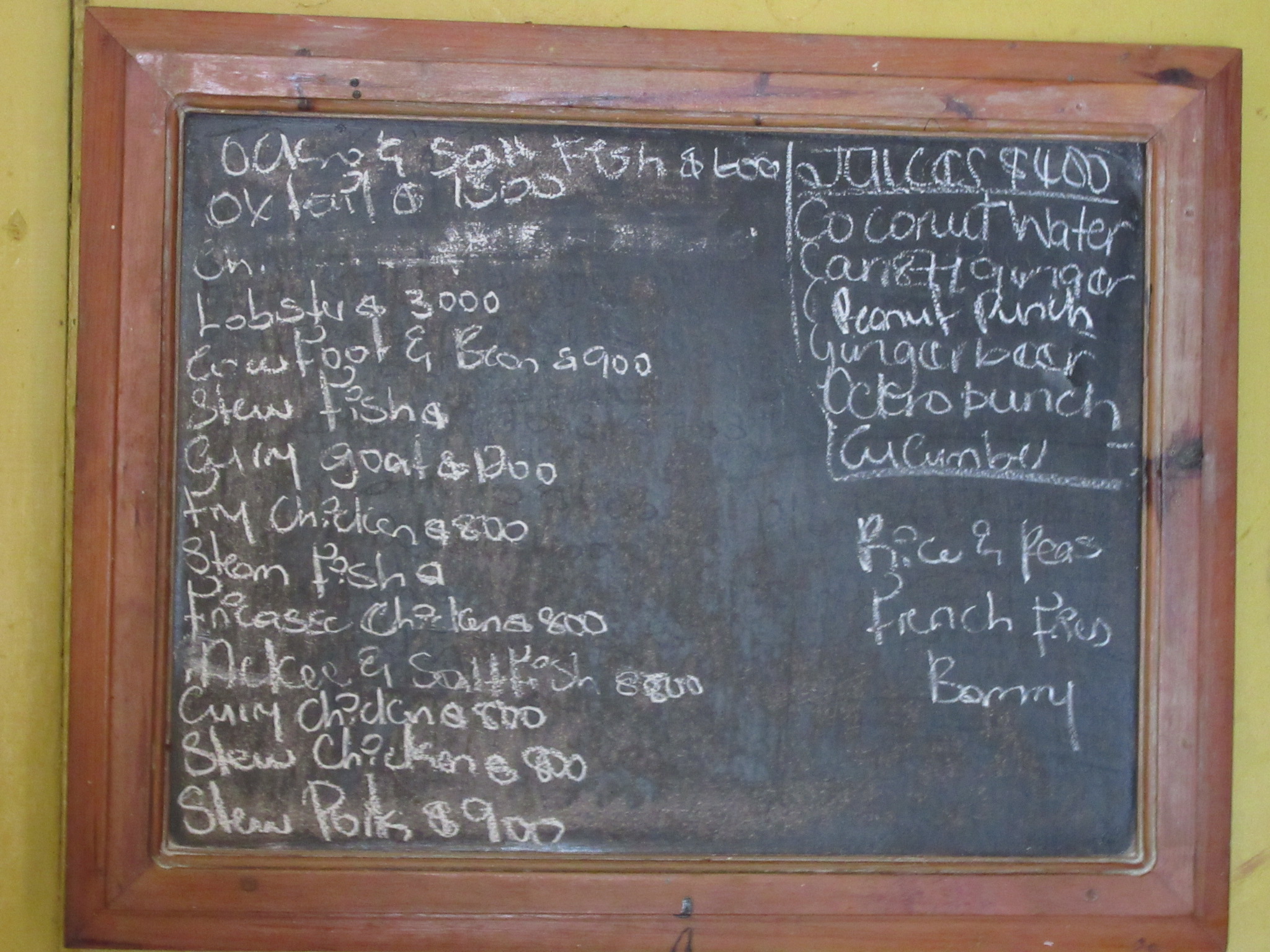 No problem. I like seeing the prices in J too because it is all i use. I bring Cdn and exchange it here. Oh, i do take a lot home so that when i come back, i have enough for groceries in MoBay before coming here.